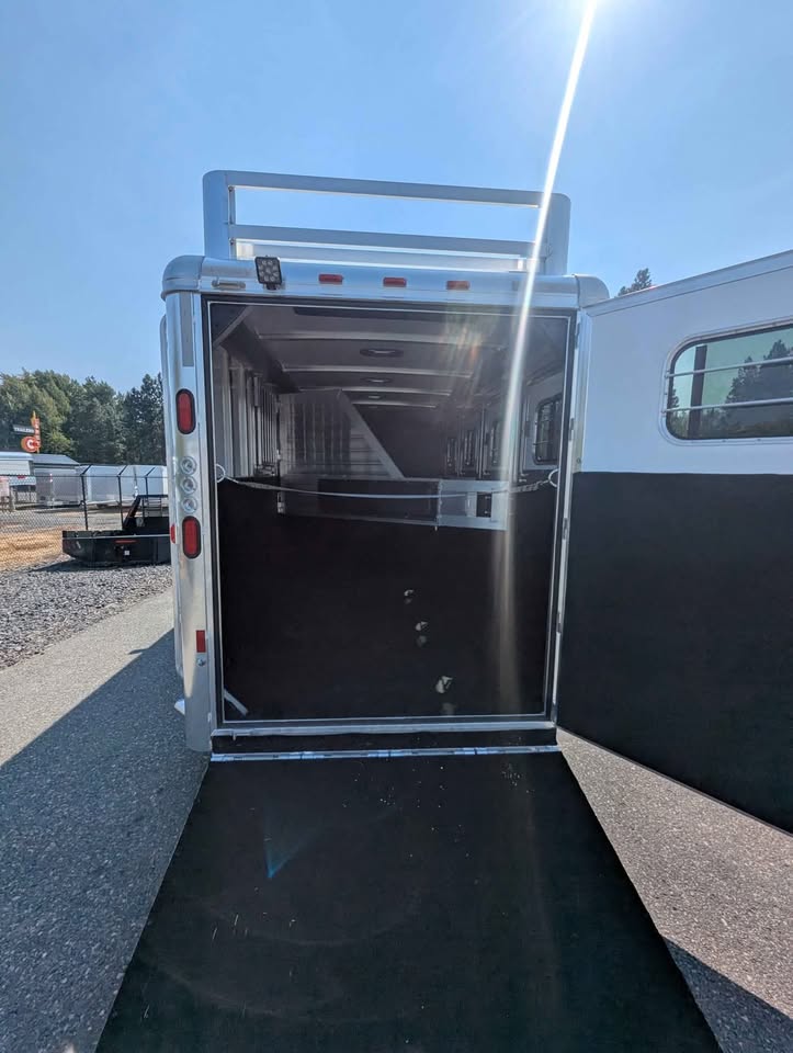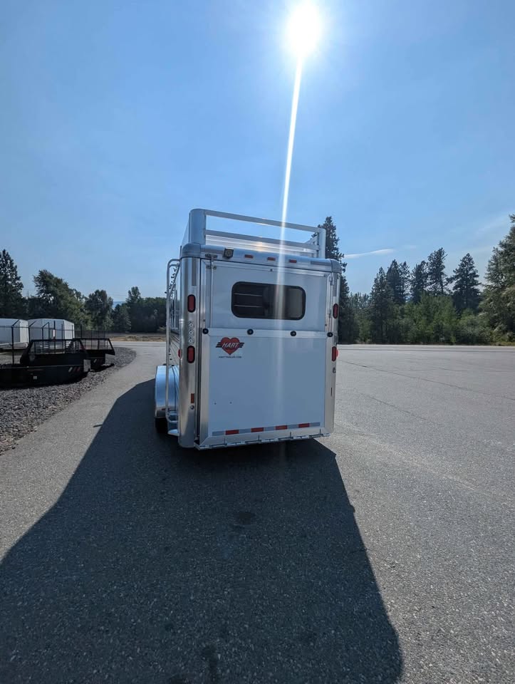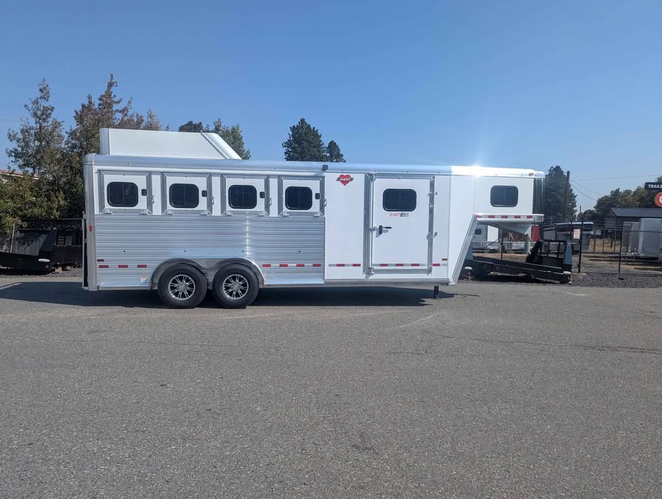 New Hart 4hr Solution with Smart Tack, fully carpeted dress/tack with boot box and clothing rod. Electric jack, hay pod, mounted spare, drop downs on both sides. Ramp on the rear, fully matted and padded telescoping dividers. Hart is known for their quality trailers and this unit is a prime example!